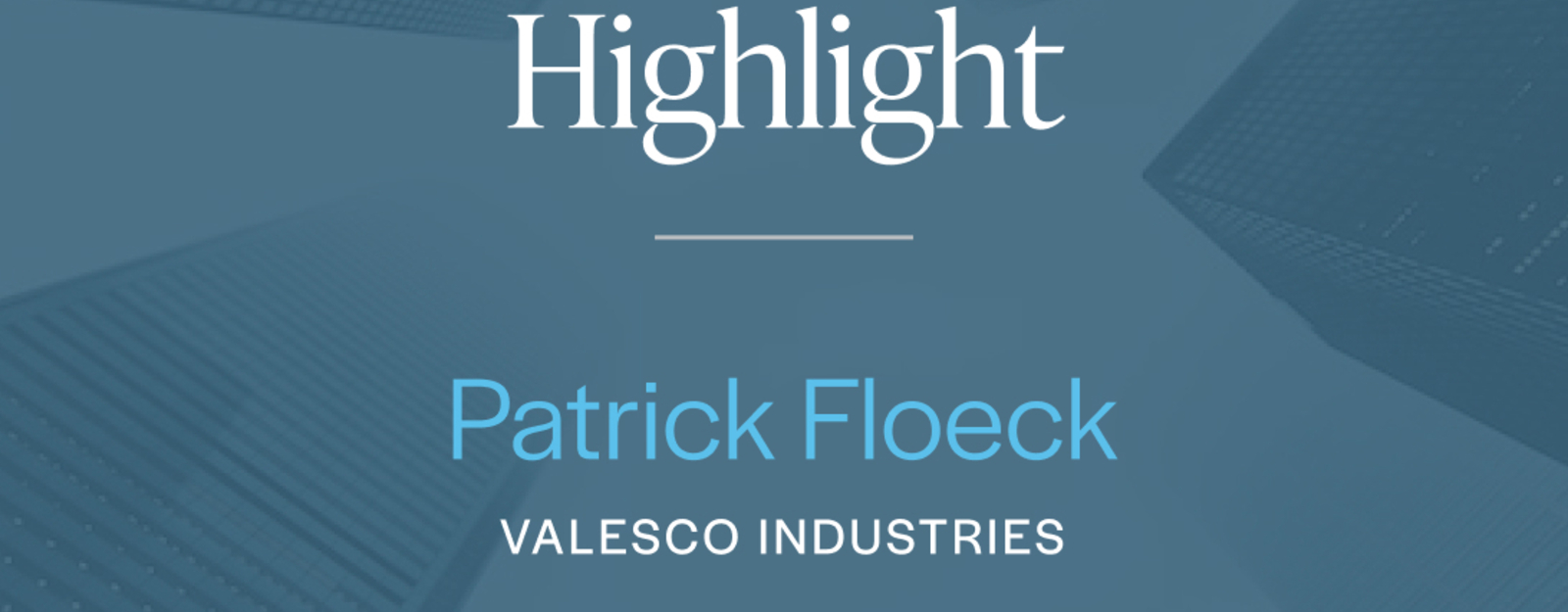 An Interview with Patrick Floeck, Principal at Valesco Industries, LLC.